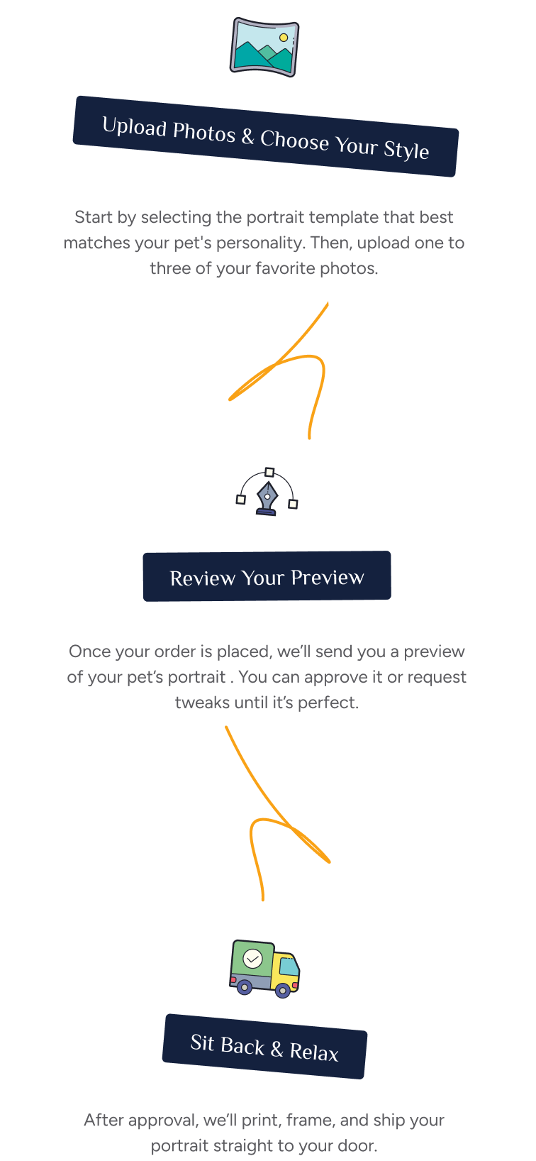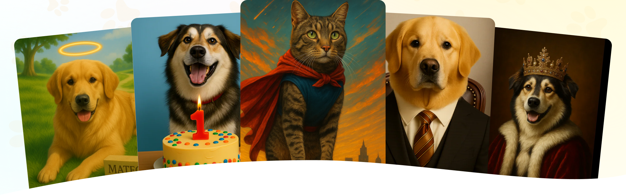 Simply choose your favorite theme, upload 1–3 clear photos of your pet, and place your order. We’ll send you a preview to approve before printing.