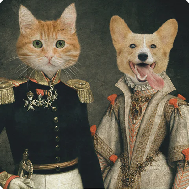 Turn your beloved pet into royalty with a one-of-a-kind portrait. Upload your photo, and we’ll transform your furry (or feathery) friend into a majestic king or queen — perfect for gifts or home décor.